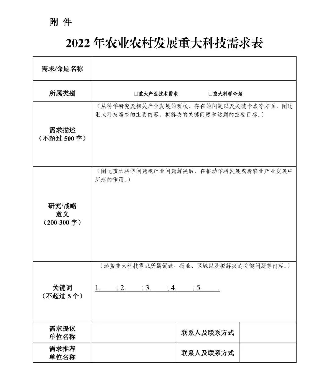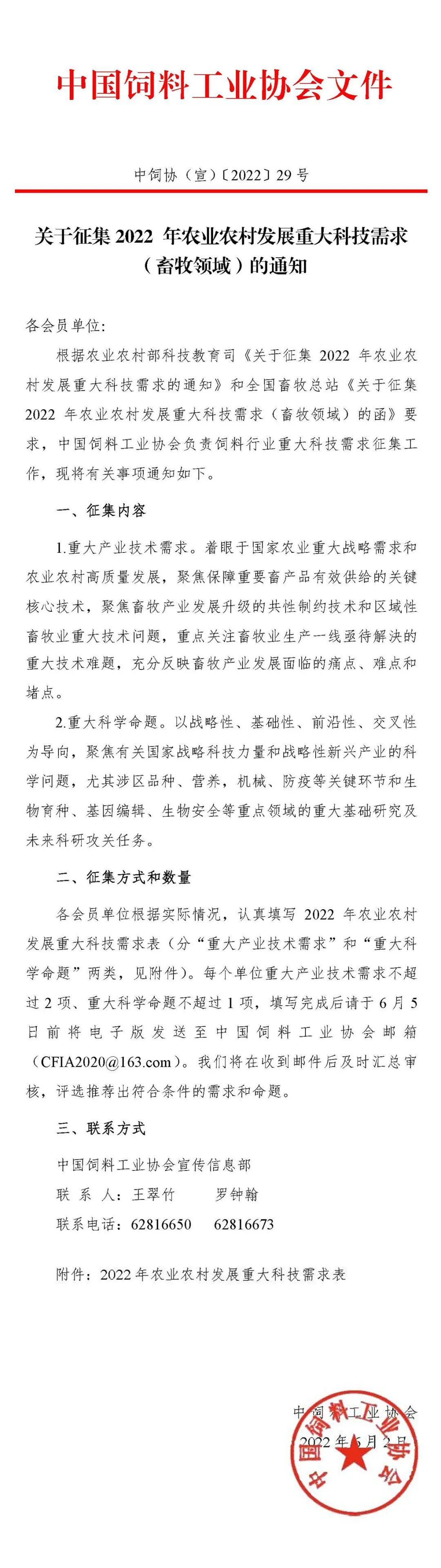 关于征集2022年农业农村发展重大科技需求(畜牧领域)的通知