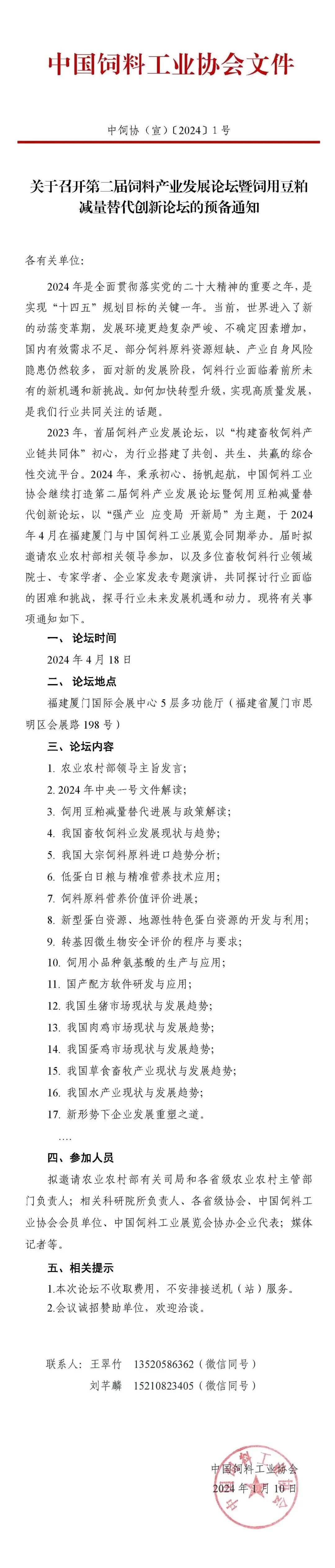 第二届饲料产业发展论坛暨饲用豆粕减量替代创新论坛将于4月隆重举办!