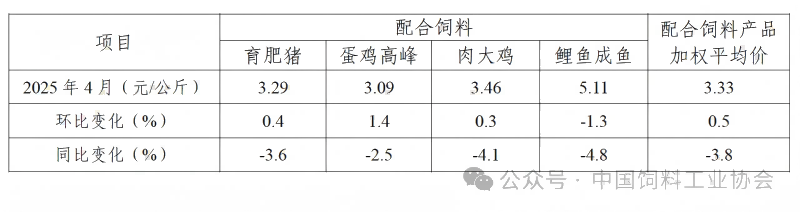 表3  2025年4月饲料企业浓缩饲料和添加剂预混合饲料平均价格