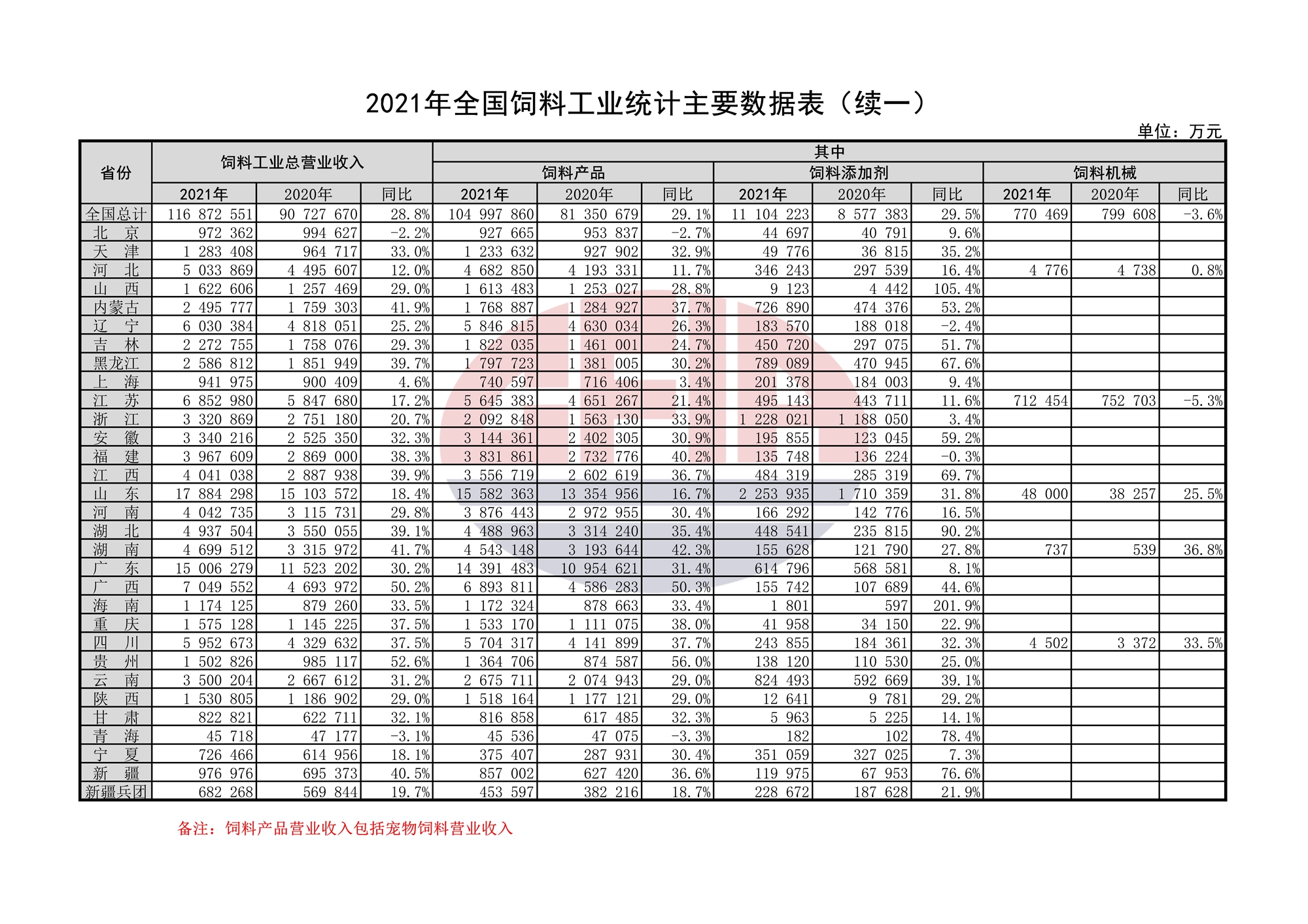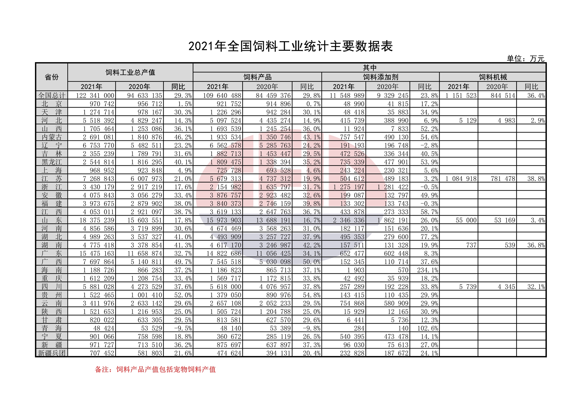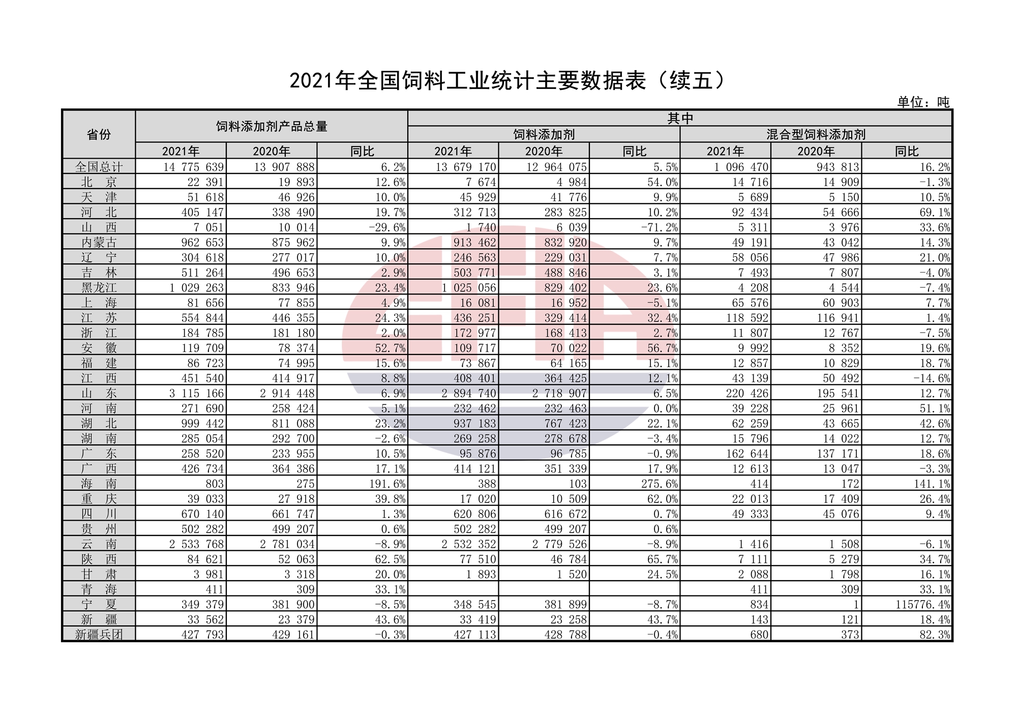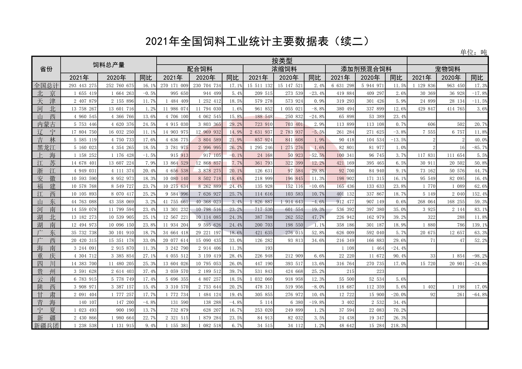 2021年全国饲料工业统计主要数据表