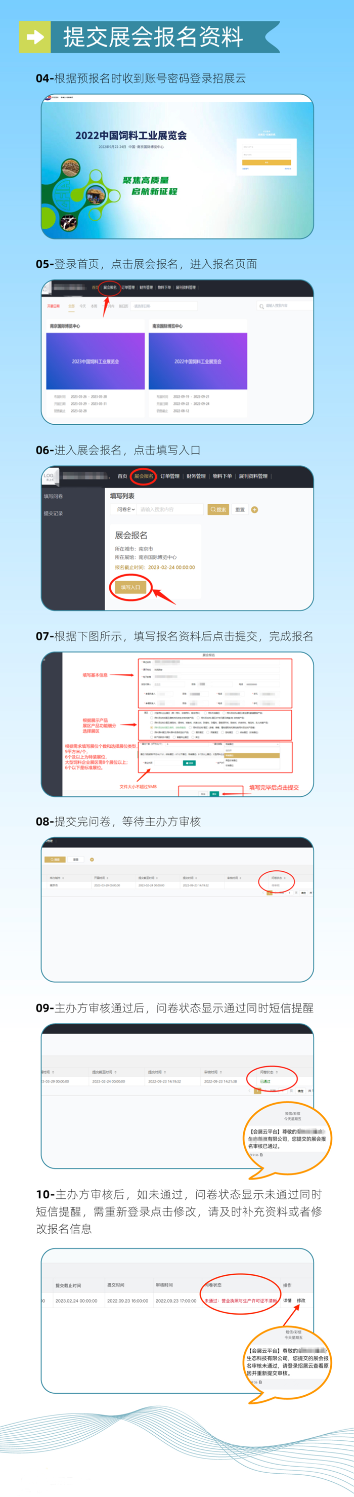 各位展商朋友们,大家好!饲料展历经26年的精心耕耘,已成为国内饲料行业规模大、专业化程度高、影响力传播力强的专业展会。随着信息化的发展,饲料展也逐渐进行信息化升级,2022年展会首次启用线上签约,2023年展会再开新篇,启动线上报名功能。为了便于大家及时报名,现将预登记及报名操作流程发布。请及时注册账户,为报名做准备哦!