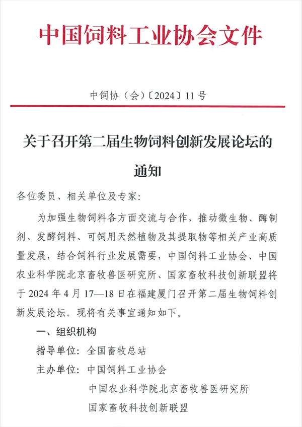 关于召开第二届生物饲料创新发展论坛的通知